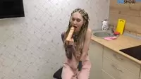 In this highly erotic and explicit scene from the adult video Riding and Fingering in the Kitchen Counter, we see two horny adults engaging in an intimate encounter on the kitchen counter, just as suggested by the title itself.The woman has long, flowing braids while her lover is covered with intricate tattoos, making them look like a pair of beautiful and wild creatures.The passionate scene begins with the man fingering his lovers soaked pussy while she rides him, moaning in pleasure.The scent of lust fills the air as their bodies press against each other.Her legs wrap around his hips, as he effortlessly glides his fingers inside her wet cunt while watching the spreading juices from the corner of his eye.As they continue this sensual dance, she begins to ride him harder and harder.Her stockings and socks become a part of this intimate spectacle, as she thrusts herself up and down on his dildocovered cock.Her movements become more aggressive, her tattooed back arched gracefully, while he looks at the sight before him in admiration, feeling his own cunt get wet.Her lovers fingers continue to caress her spread cunt as she rides him like a woman possessed by desire.She groans louder and harder, while her partners breath becomes heavier.He watches, fascinated, the image of his lover in front of him with those amazing braids, inked skin and the promise of her wet cunt, becoming a powerful aphrodisiac for both.Suddenly, the woman jumps off the dildo, wrapping her mouth around it, giving it a loving kiss before going back to her initial rhythm, all the while engaging in an incredible oral sex session on him.Their moans and groans mix together, creating a perfect harmony of pleasure and passion.As their bodies become more entwined and drenched with desire, they reach a climax that shakes the entire kitchen counter, leaving behind memories of an unforgettable porn video.In the end, this scene truly represents the essence of Riding and Fingering in the Kitchen Counter.
